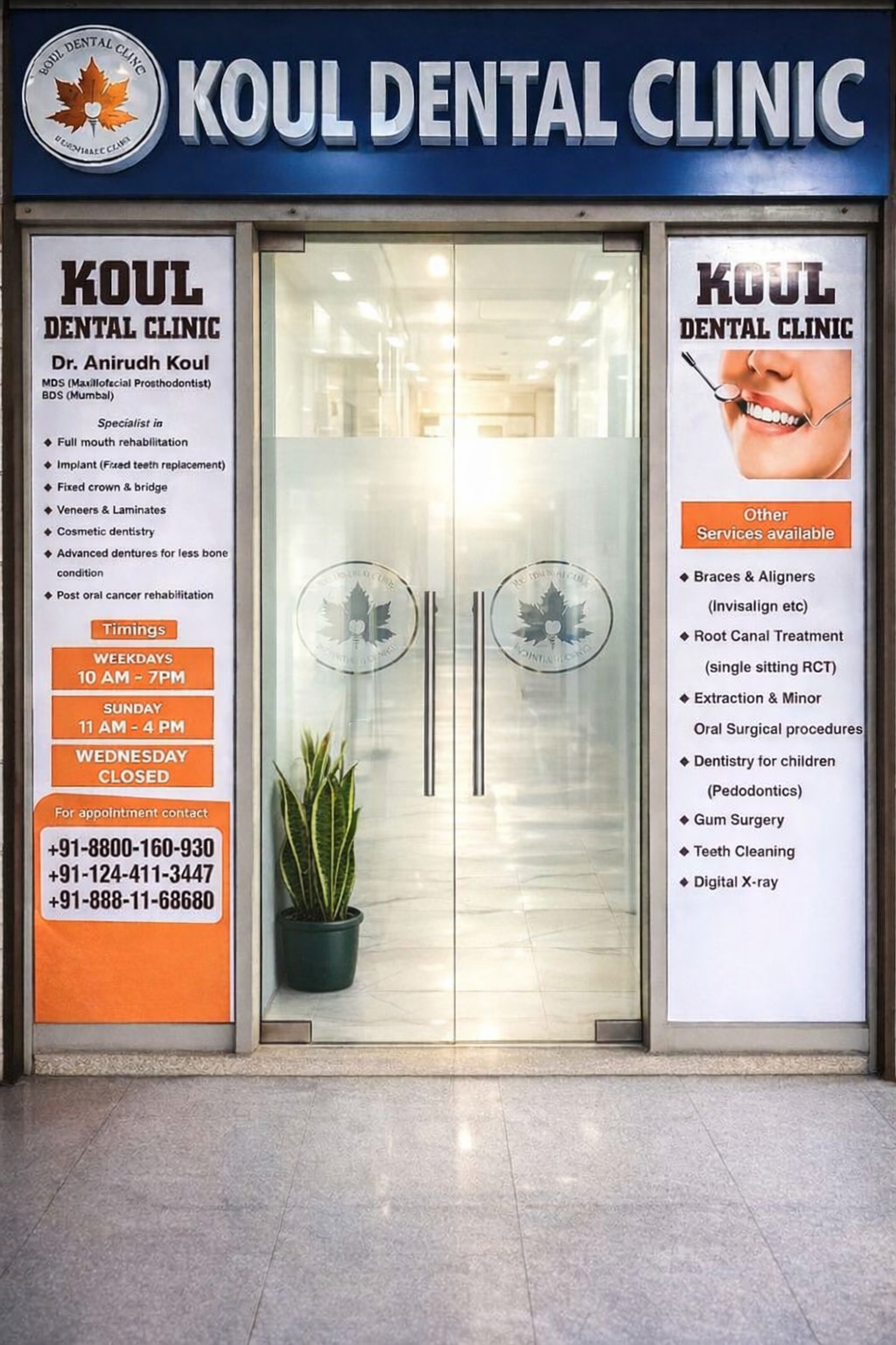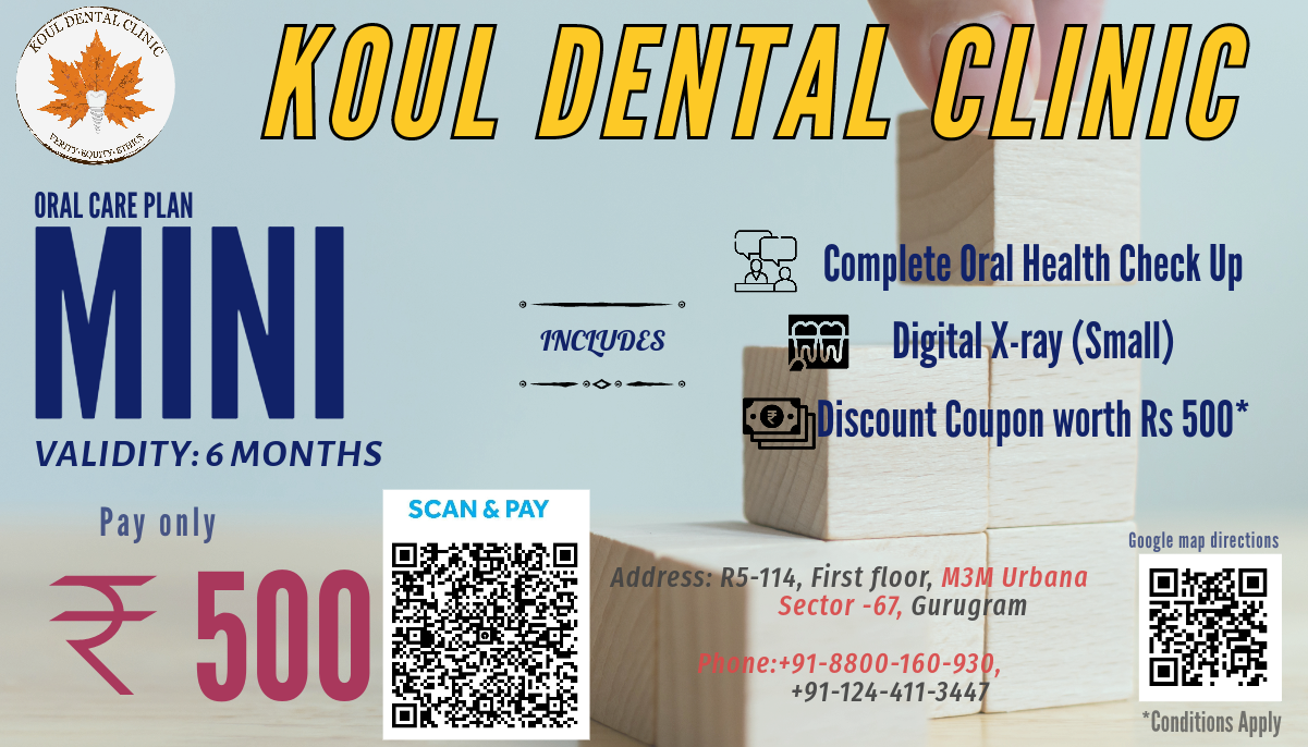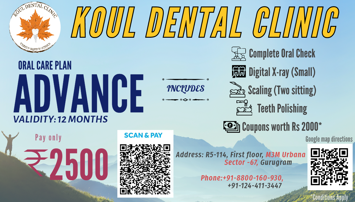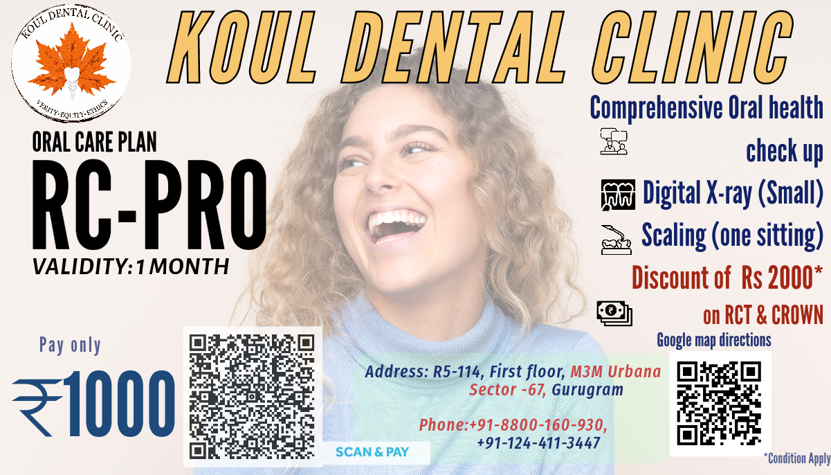 Koul Dental Clinic is the highest ranking and patient preferred specialty dental clinic in Gurugram’s Sec 67 locality. Our lead prosthodontist and clinic owner Dr. Anirudh Koul specializes in Gerodontology and post cancer oral rehabilitation. In addition, we have a team of MDS doctors taking care of all aspects of oral and dental care. We use the most advanced materials, equipment and techniques to provide you the best dental care.